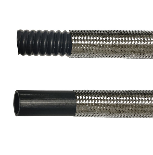 PTFE Antistatic Convoluted Hose is a flexible, chemically resistant hose designed for applications where both flexibility and prevention of electrostatic buildup are required.
